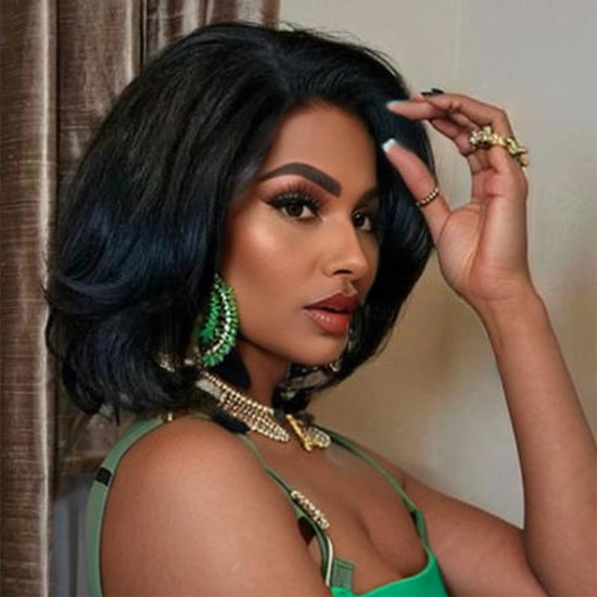 Perruque Bob courte ondulée en cheveux humains avec dentelle frontale